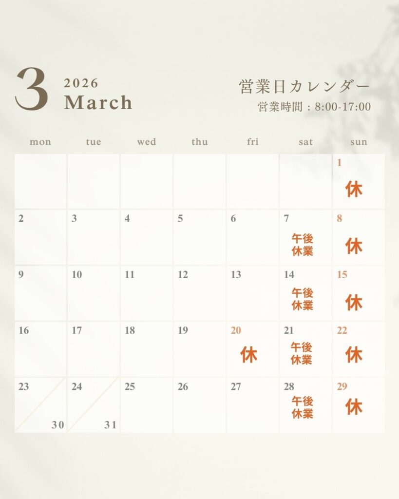 ホーム トピックス 2026.02.27 3月営業日のお知らせです。 3月営業日のお知らせです。 公式ラインやSNSのDMからのお問合せは随時対応いたします。 お気軽にご連絡ください。 TEL:0853-63-3141 FAX:0853-63-3589 « 2月営業日のお知らせ 最近の投稿 3月営業日のお知らせです。 2026.02.27 2月営業日のお知らせ 2026.01.30 1月営業日のお知らせ 2026.01.05 年末年始の営業のお知らせ 2025.12.25 12月営業日のお知らせ 2025.11.29 アーカイブ 2026年2月 2026年1月 2025年12月 2025年11月 2025年10月 2025年9月 2025年8月 2025年7月 2025年5月 2025年4月 2025年2月 2025年1月 ヤママサ醤油をつかったレシピのご紹介です。 詳しく見る ▶